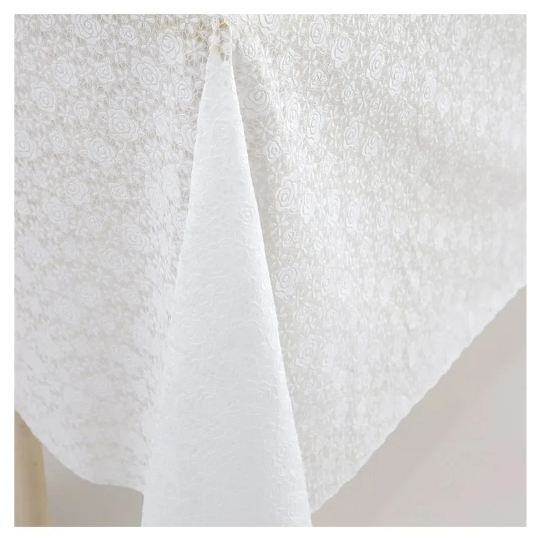Este mantel de encaje con delicadas flores blancas, de 1,37 x 20 metros, ofrece una elegancia clásica ideal para eventos y decoraciones sofisticadas. Su diseño detallado realza cualquier ambiente, aportando un toque refinado y atemporal. Perfecto para proteger superficies mientras añade estilo y distinción a tus espacios.