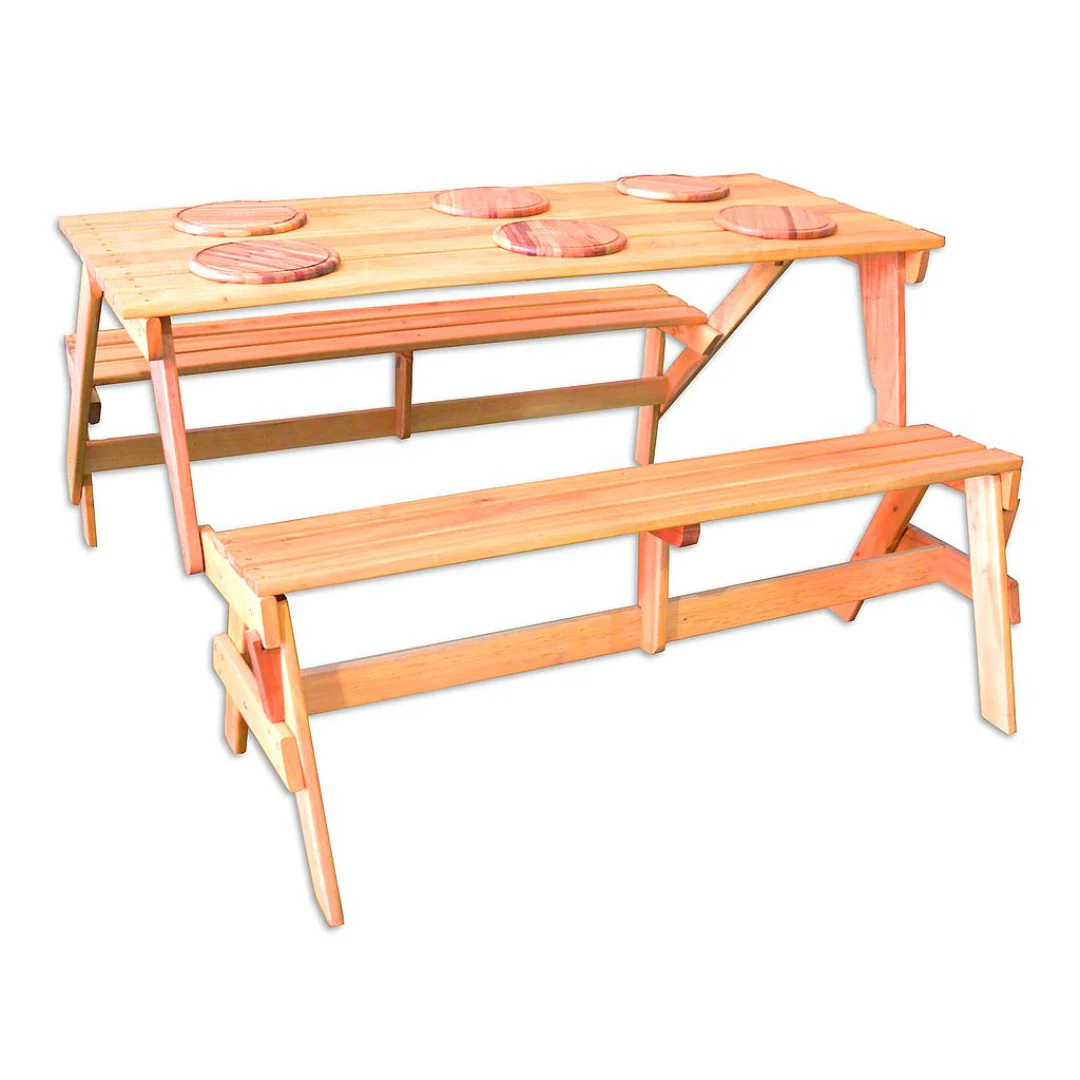 ¡En tu casa no puede faltar una! Combina perfectamente la utilidad y versatilidad en un sólo producto. Ideal para el jardín, quincho o exteriores. Este banco puede convertirse en mesa al desplegarse sin mucho esfuerzo y tiene capacidad para 6 personas.