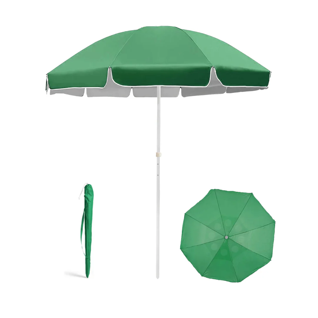 La sombrilla para playa UPLION de 2,40 metros en color verde ofrece una amplia cobertura para protegerte eficazmente del sol. Su estructura resistente garantiza durabilidad y estabilidad, ideal para disfrutar cómodamente en la playa. Su tamaño generoso proporciona sombra suficiente para varias personas, combinando funcionalidad y diseño práctico para tus días al aire libre.