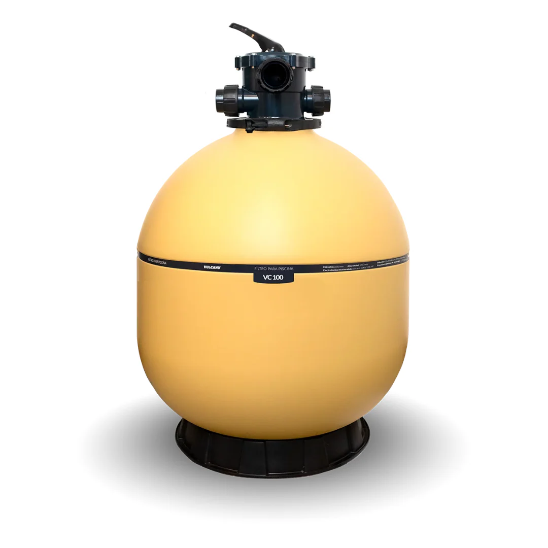 Filtro soplado VC-200 Vulcano de ø 780mm, para piletas de hasta 180m³, con multiválvula 2” de 6 vías y montaje superior; con las funciones de Filtrar, Retrolavar, Desagotar, Enjuagar, Recircular y Cerrar. Fabricados en una sola pieza y con materiales de alta resistencia a la corrosión, éstos equipos de filtrado garantizan una larga vida útil de óptimo funcionamiento.