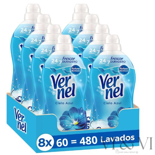 Vernel Cielo Azul ofrece un frescor que acompaña la ropa durante todo el día. Es ideal tanto para ropa de uso diario como para textiles del hogar, como sábanas, toallas o cortinas, aportando siempre un resultado impecable y un aroma inconfundible.